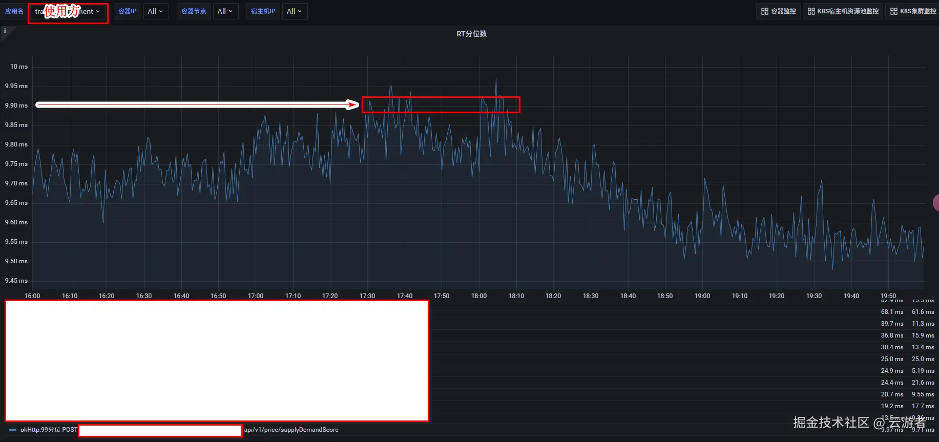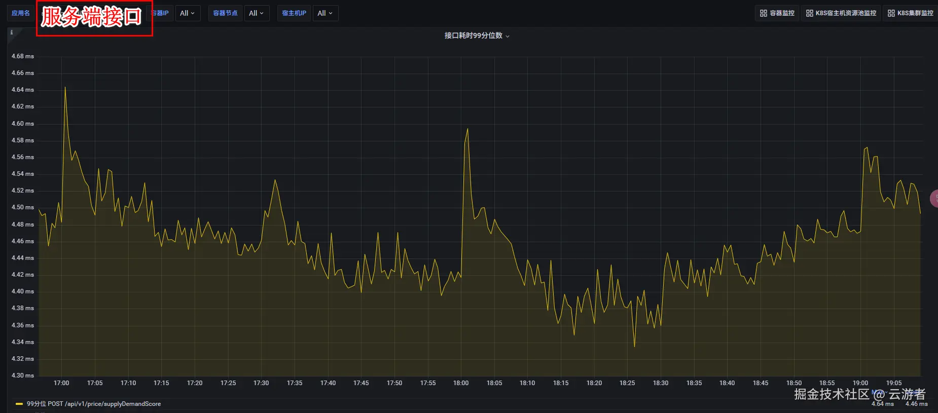 Grafana监控服务端的99分位耗时: 从Tomcat接收请求开始,到 Tomcat发送完结束。