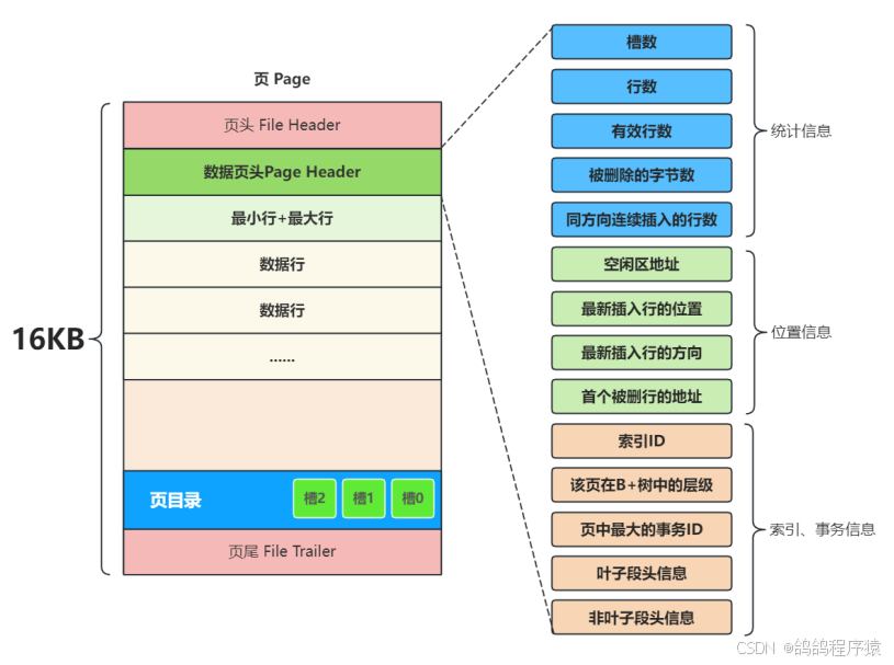 页(Page)是MySQL存储文件最重要的结构体,也是内存与磁盘交互的最小单元,默认大小16KB,内存与磁盘每次交互最少读一页。一页就是B+数中的一个节点。