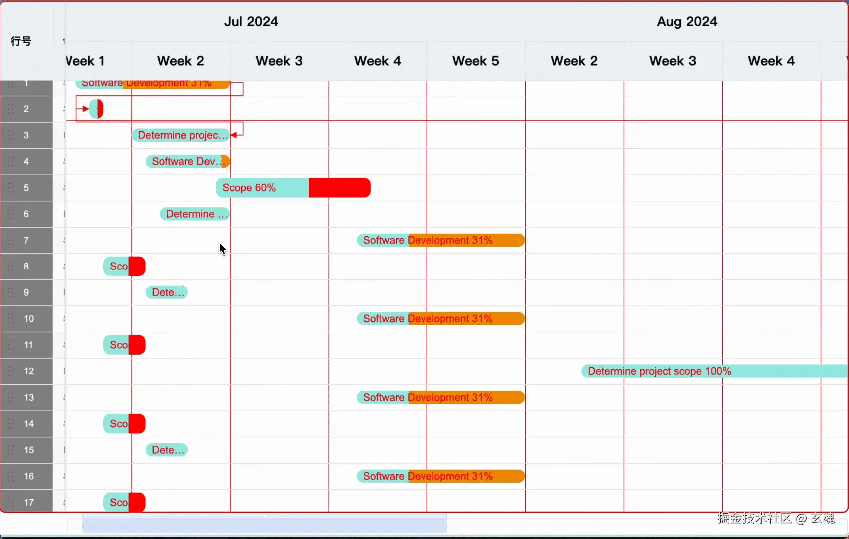 赖景康 :在此之前,VTable Gantt 虽然能展示时间任务,但缺少灵活的缩放交互,用户往往需要手动调整或依赖固定刻度,体验并不友好。这次开发的 智能缩放系统 和 DataZoom 集成,让用户可以像操作地图一样直观地浏览任务时间轴:既能快速查看宏观的全局排期,也能放大到具体的小时级细节。这不仅提升了交互体验,还让 VTable 的应用场景更贴近真实项目管理需求,我觉得这是对社区生态非常关键的一步。