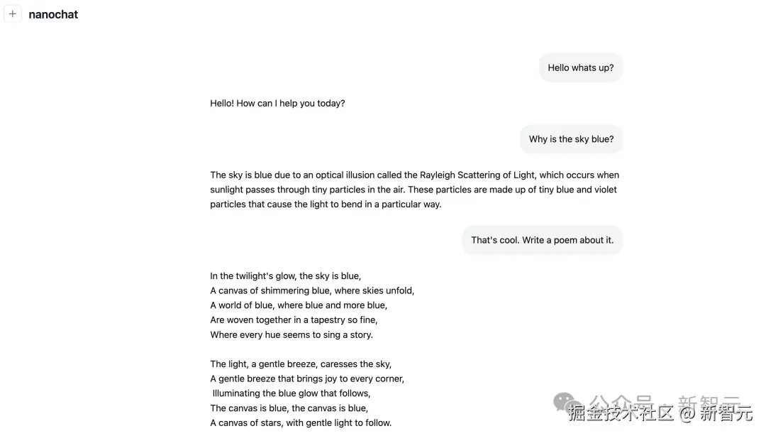 整个系统仅约 8000 行干净代码,启动一台 GPU 机器、运行一条脚本,4 小时后你就能在网页界面与自己训练的「小 ChatGPT」对话。