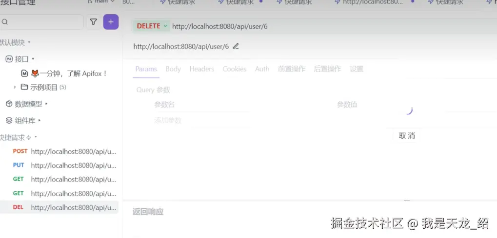 在表里手动删掉一条,然后用Apifox