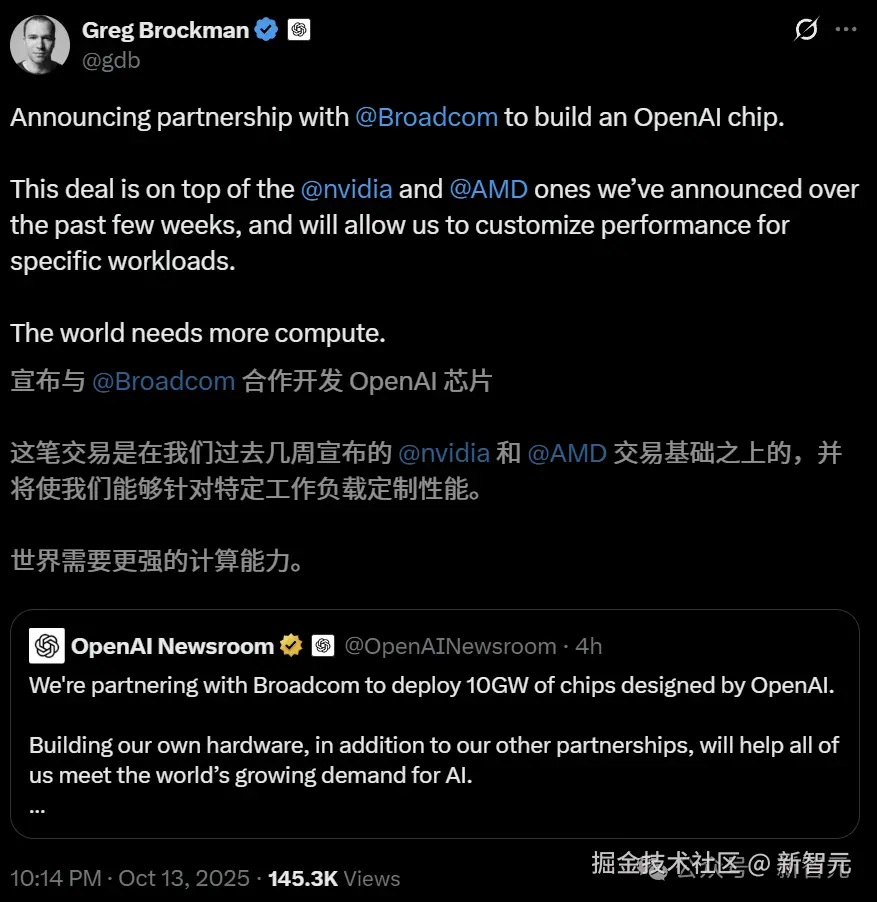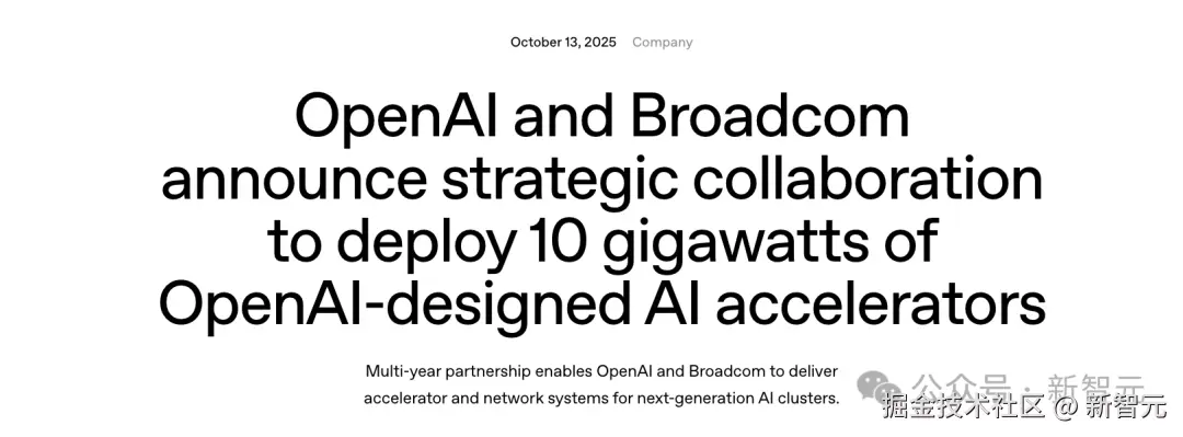 「【新智元导读】OpenAI 终于官宣了!联手芯片巨头博通下场造 AI 芯片,预计 2029 年底部署 10GW 算力。内部已秘密研发 18 个月,首颗芯片 9 个月后量产,AI 领域的 M1 时刻将至。」