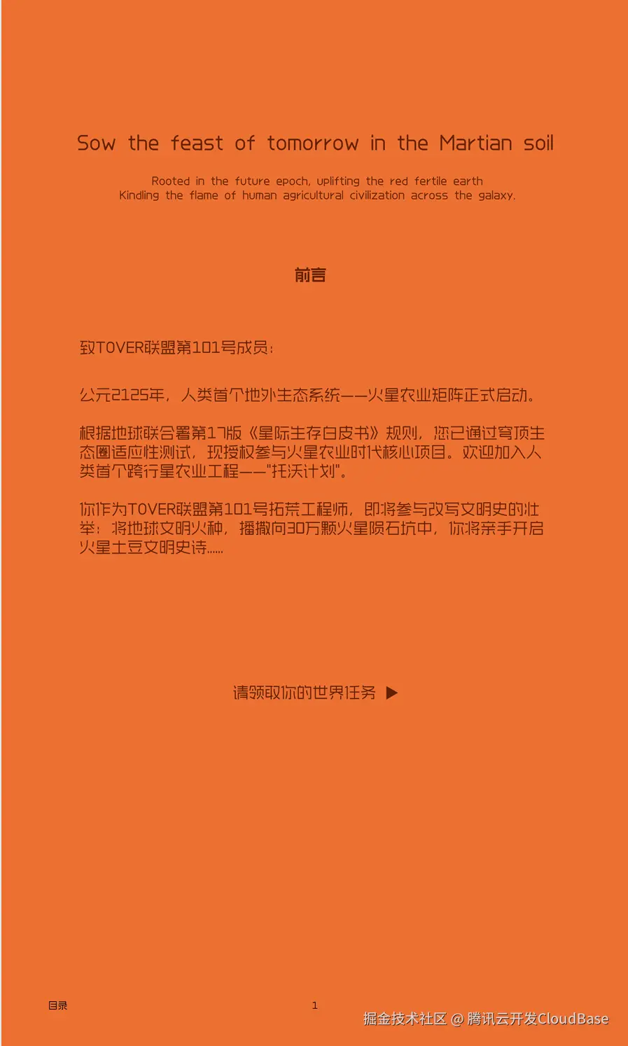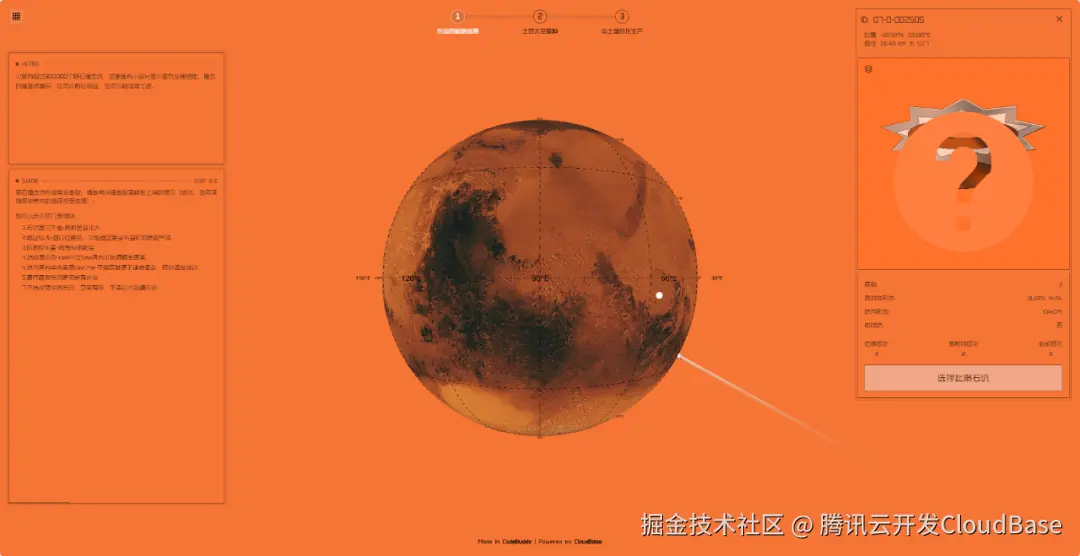 这是一个创新的Web科幻叙事研究,模拟未来人类在火星上进行农业开发的场景。也是一个从未来太空农业出发的当代土豆公益项目,用户作为"TOVER联盟第101号成员",需要在火星上选择合适的陨石坑作为农业基地,并培育适合火星环境的土豆品种。