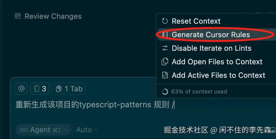 Generate Cursor Rules 不仅可以为已存在的项目升成完整的规则文件, 也可以通过添加描述对规则进行优化。