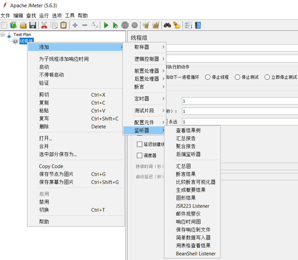 在Jmeter中监听器通常用于监听以及实时展示JMeter取样器的测试执行结果,监听器支持以树、表及图形等形式展示当前正在压测的测试结果,同时也支持以文件方式保存测试结果,Jmeter支持XML、CSV等格式的来保存测试结果到指定的文件中,监听器通常是用于对性能测试的结果做统计分析以快速的发现性能压测中可能存在的性能问题,如下图所示。