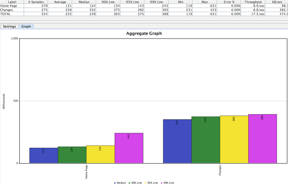 - 90% Line:指90%的取样器请求的耗费时长不会超过此时长,并且剩余的请求的时长不会低于该时长。