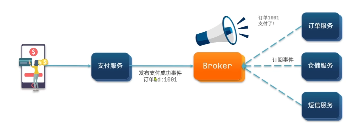 当支付服务发布支付成功事件后会发送一个订单id给Broker