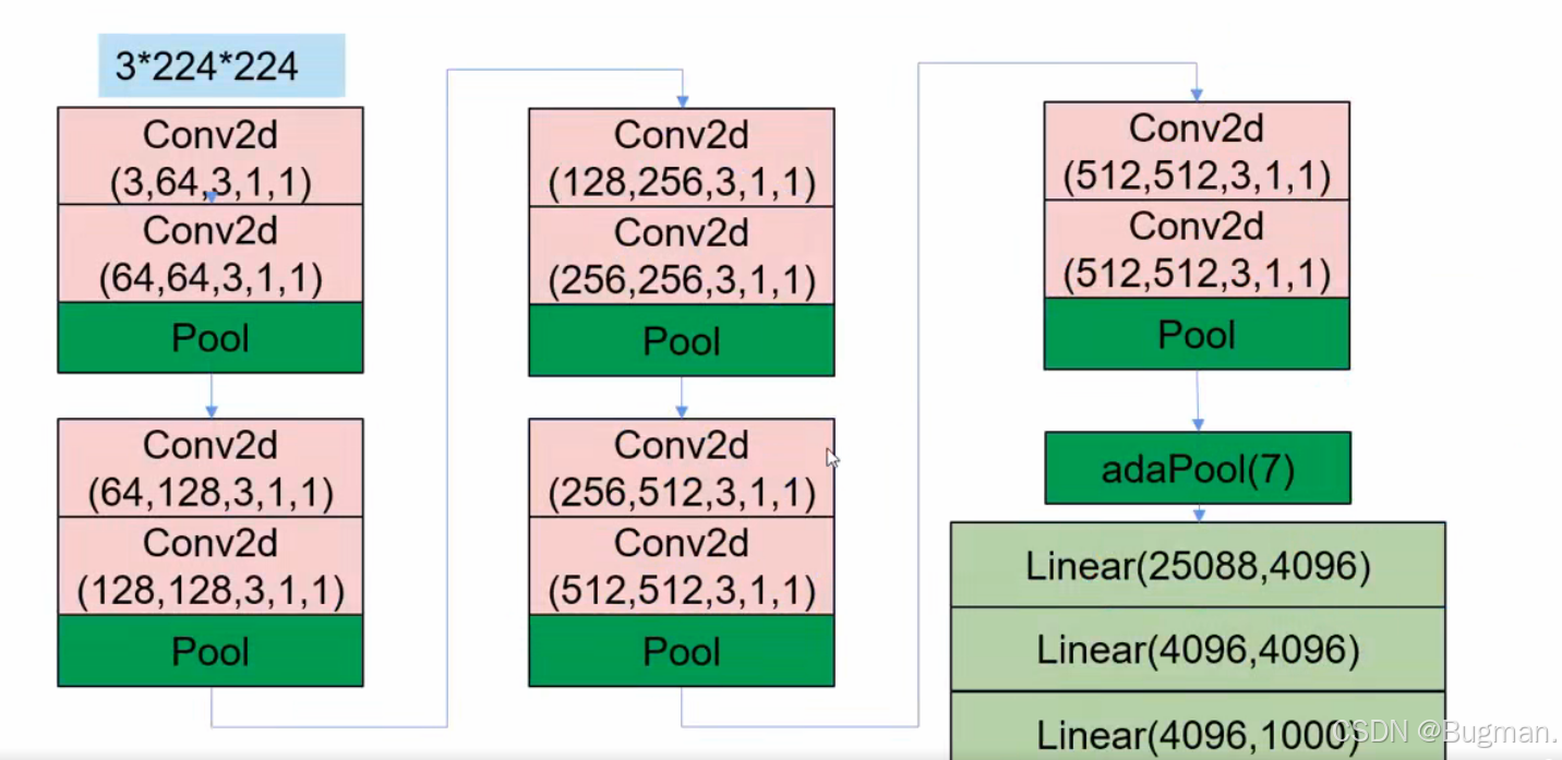 VGGNet网络的特点是用小参数代替大参数,我们这里分析VGG网络每一层的参数量,并且实现网络