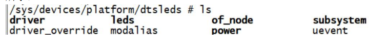 用新的 zImage 和 imx6ull-alientek-emmc.dtb 启 动 开 发 板 , 启 动 以 后 查 看 /sys/bus/platform/devices/dtsleds 这个目录是否存在,如果存在的话就如到此目录中,如图