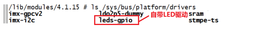 第 290~296 行,platform_driver 驱动结构体变量,可以看出,Linux 内核自带的 LED 驱动 采用了 platform 框架。第 291 行可以看出 probe 函数为 gpio_led_probe,因此当驱动和设备匹配 成功以后 gpio_led_probe 函数就会执行。从 294 行可以看出,驱动名字为"leds-gpio",因此会 在/sys/bus/platform/drivers 目录下存在一个名为"leds-gpio"的文件,如图