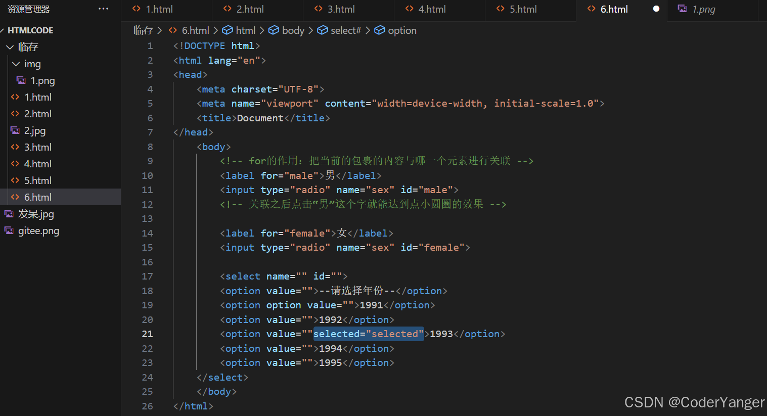<!-- 关联之后点击"男"这个字就能达到点小圆圈的效果 -->
