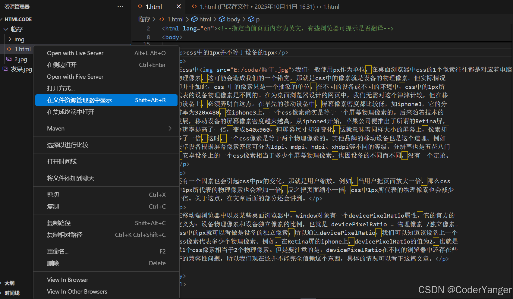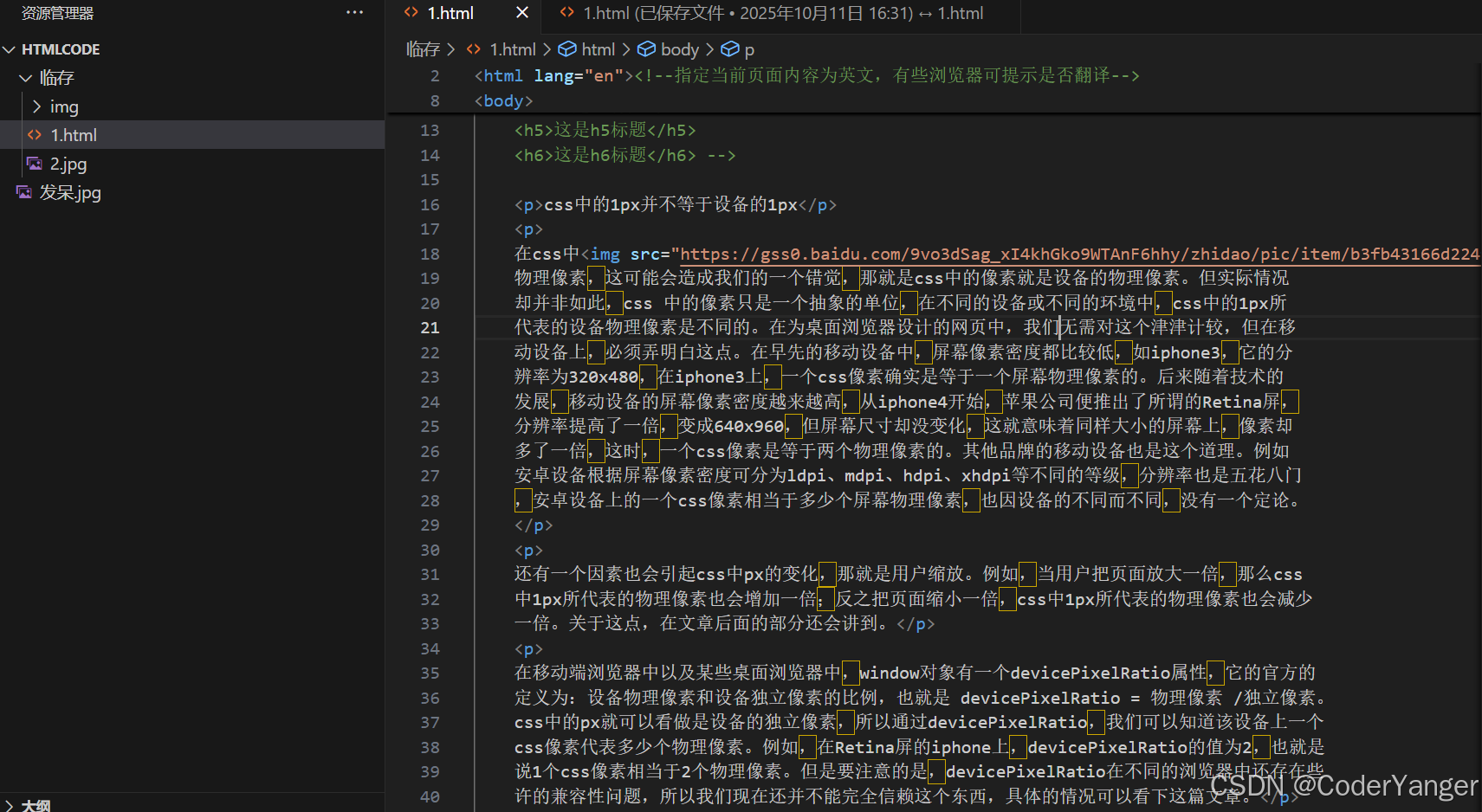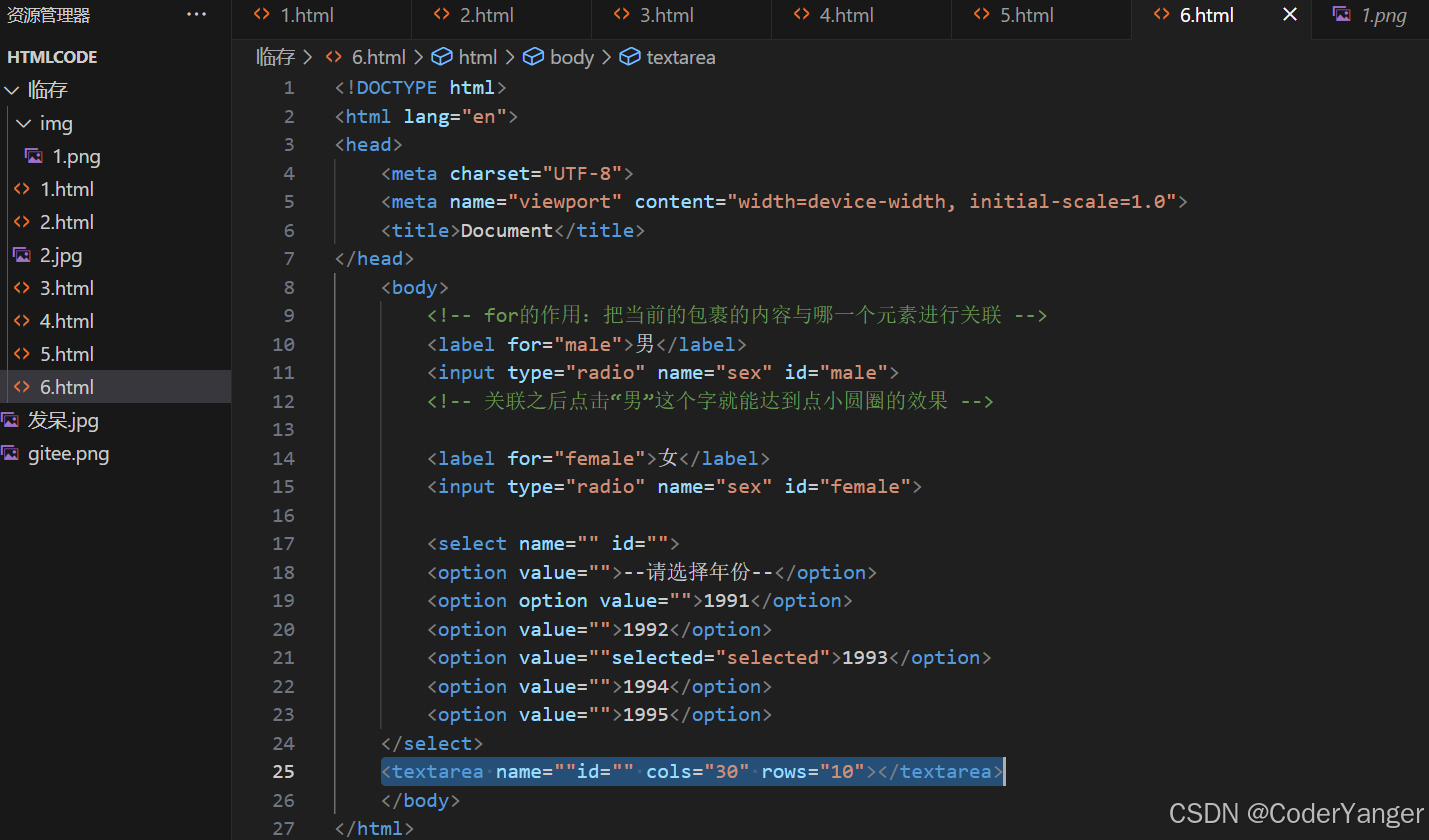 ⑥html 中直接输入换行不会真的换行 , 而是相当于一个空格 .