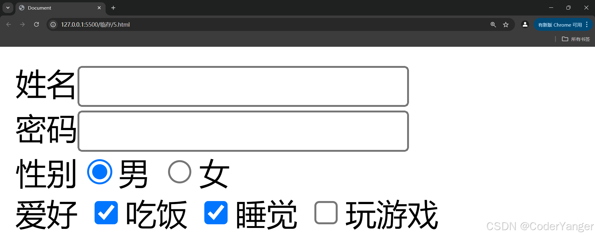 <!-- checked保证默认值,男和女都设置默认值时,具体默认值取决于浏览器的判断 -->