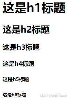 六个: h1 - h6. 数字越大 , 字体越小、越细