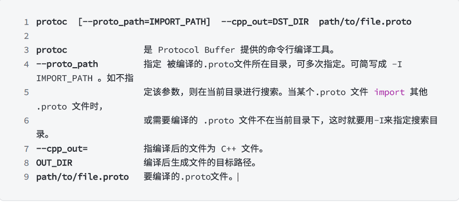 使用 protoc 编译器编译 .proto 文件,生成一系列接口代码,存放在新生成头文件和源文件中。