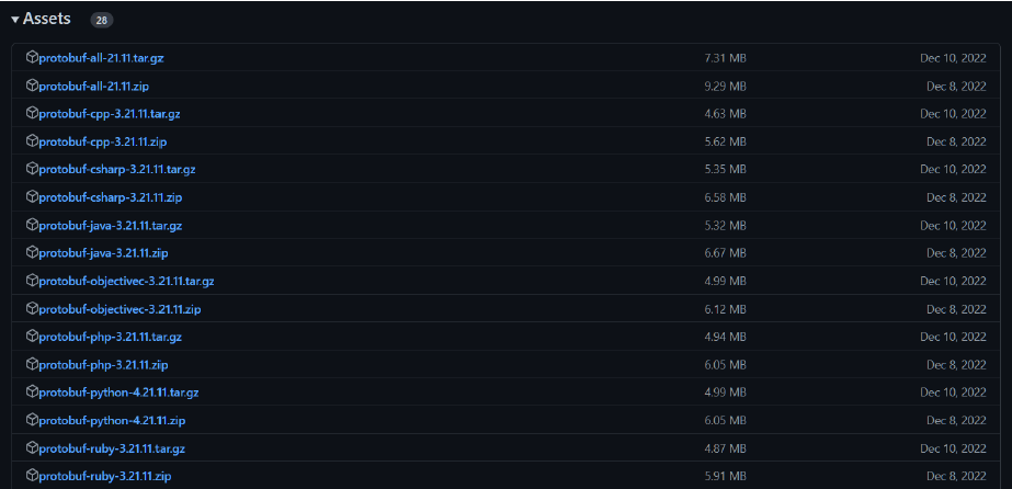 下载地址:https://github.com/protocolbuffers/protobuf/releases