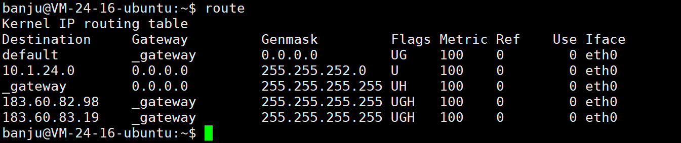 ,是系统的默认网关; - Genmask:路由的子网掩码 (网络掩码)。用于区分