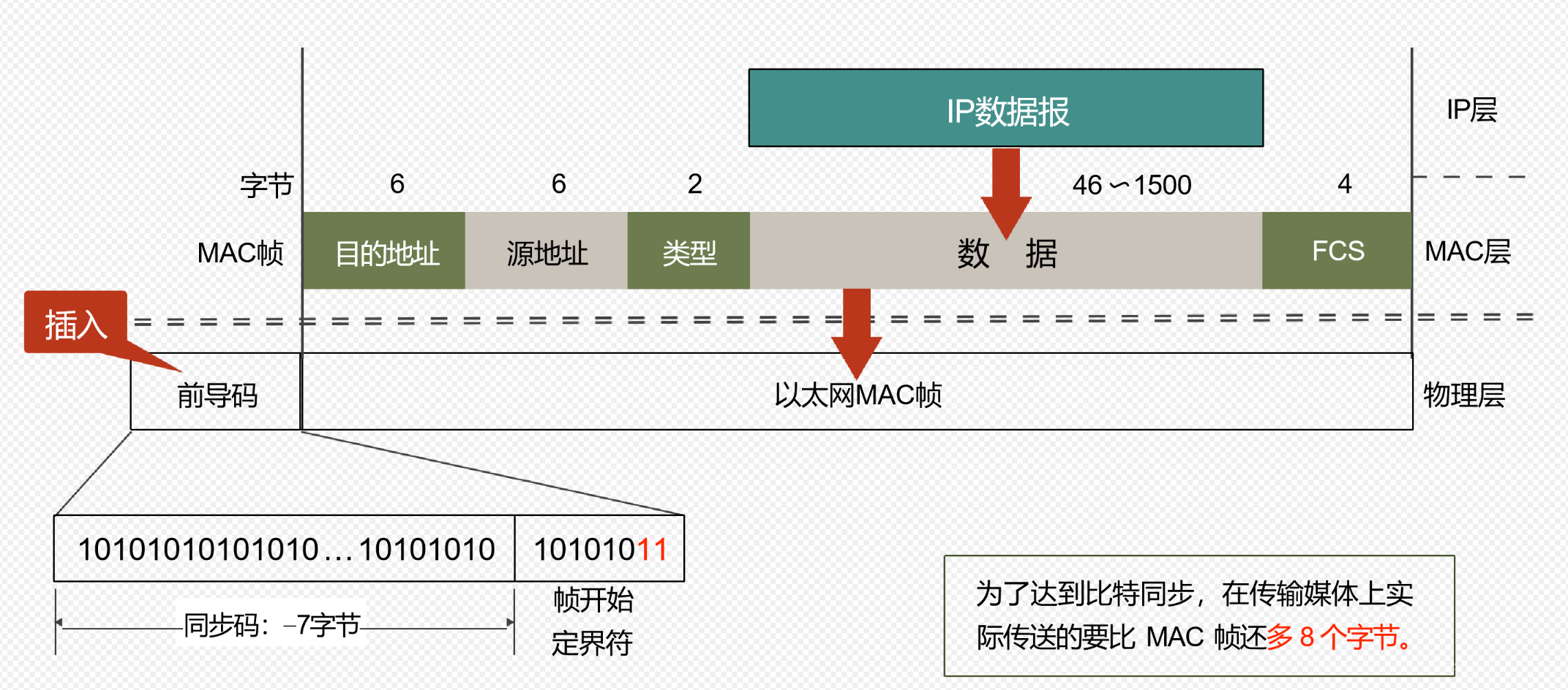 - 在报头中有两个地址:源地址表示发送主机的Mac地址,目的地址表示目标主机的Mac地址;