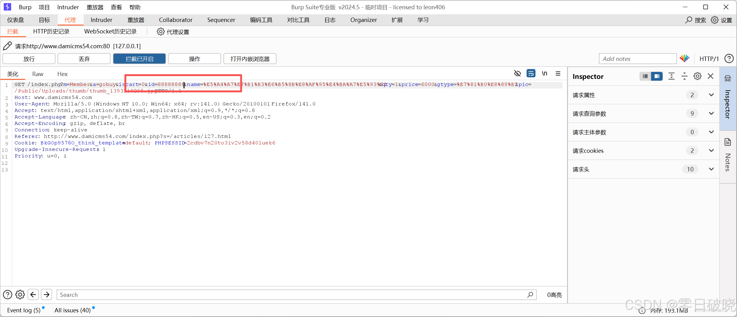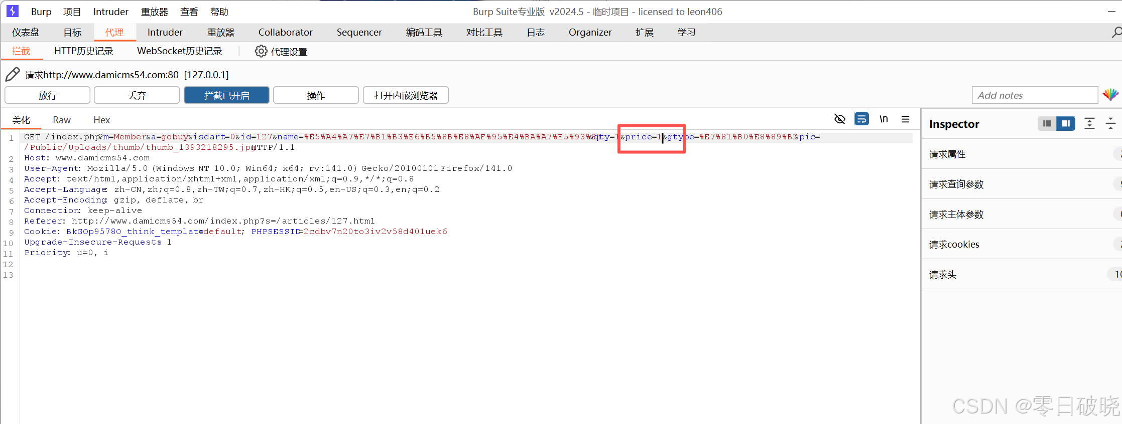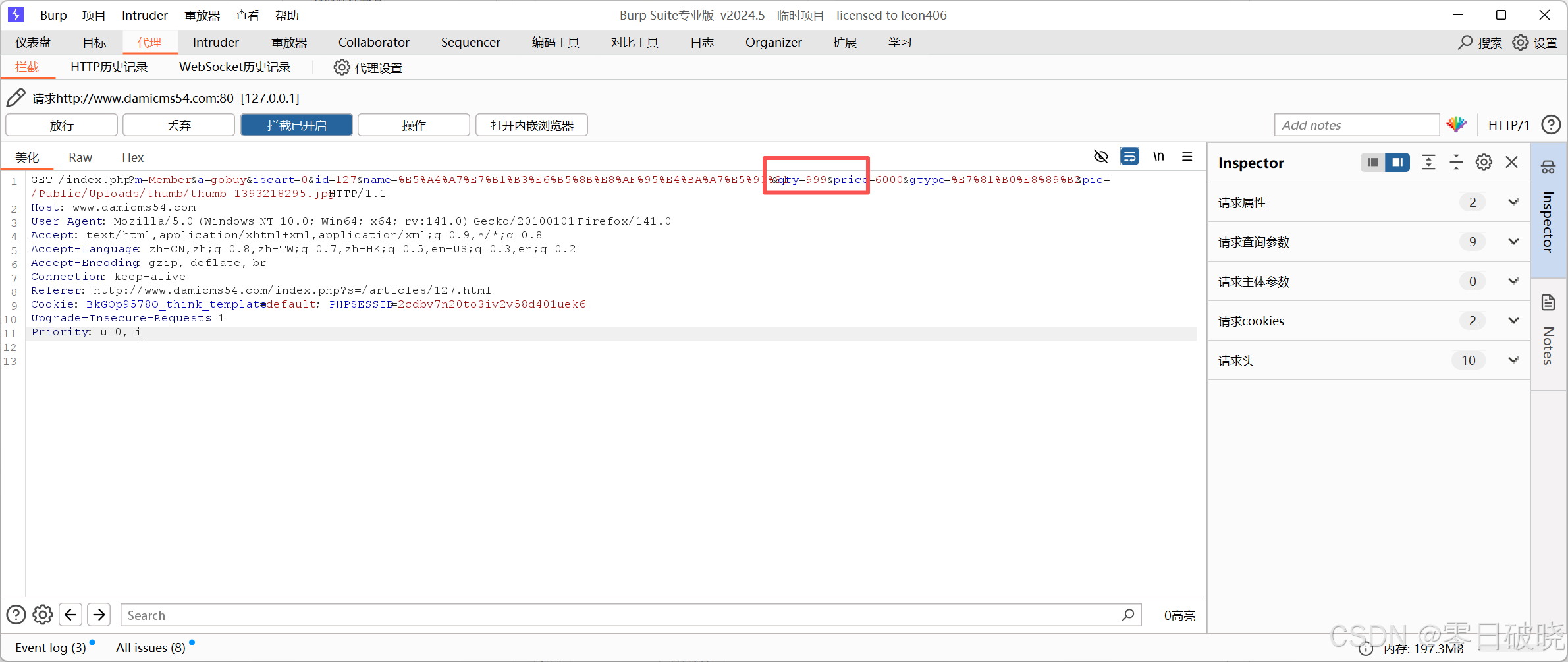 2.打开Burp Suite代理,选择"立即购买",然后进行抓包