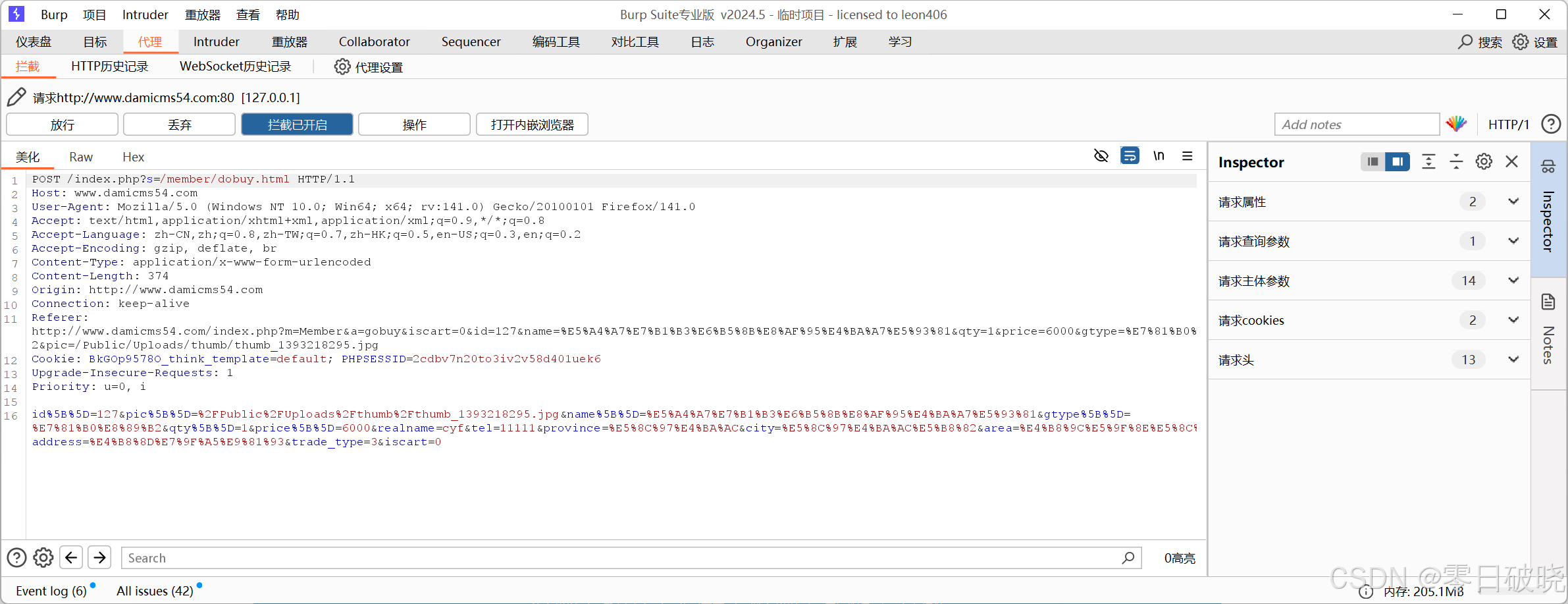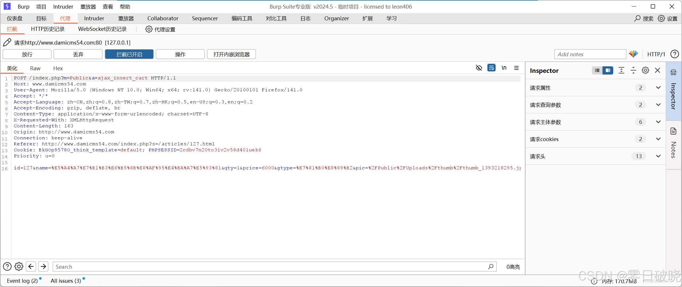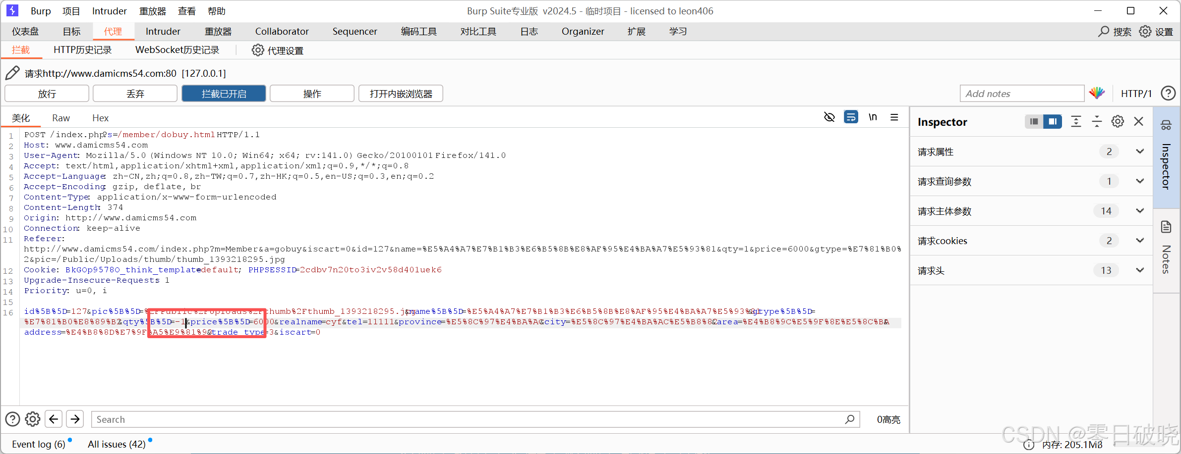 2.打开Burp Suite代理,选择"立即购买",然后进行抓包