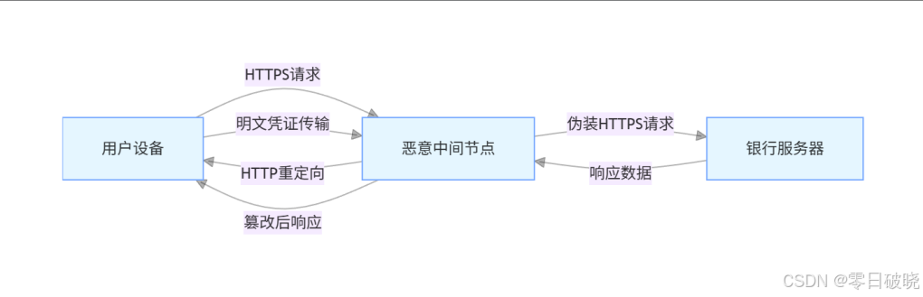 基于HTTP明文传输的架构使攻击者可实施中间人攻击(MITM),结合sslstrip2等工具强制降级HTTPS为HTTP,窃取支付敏感参数。