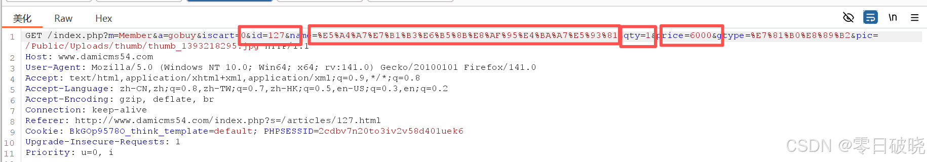 在这里我们可以清晰可见的发现,几个比较重要的参数:商品id,商品数量(qty),商品价格(price)。