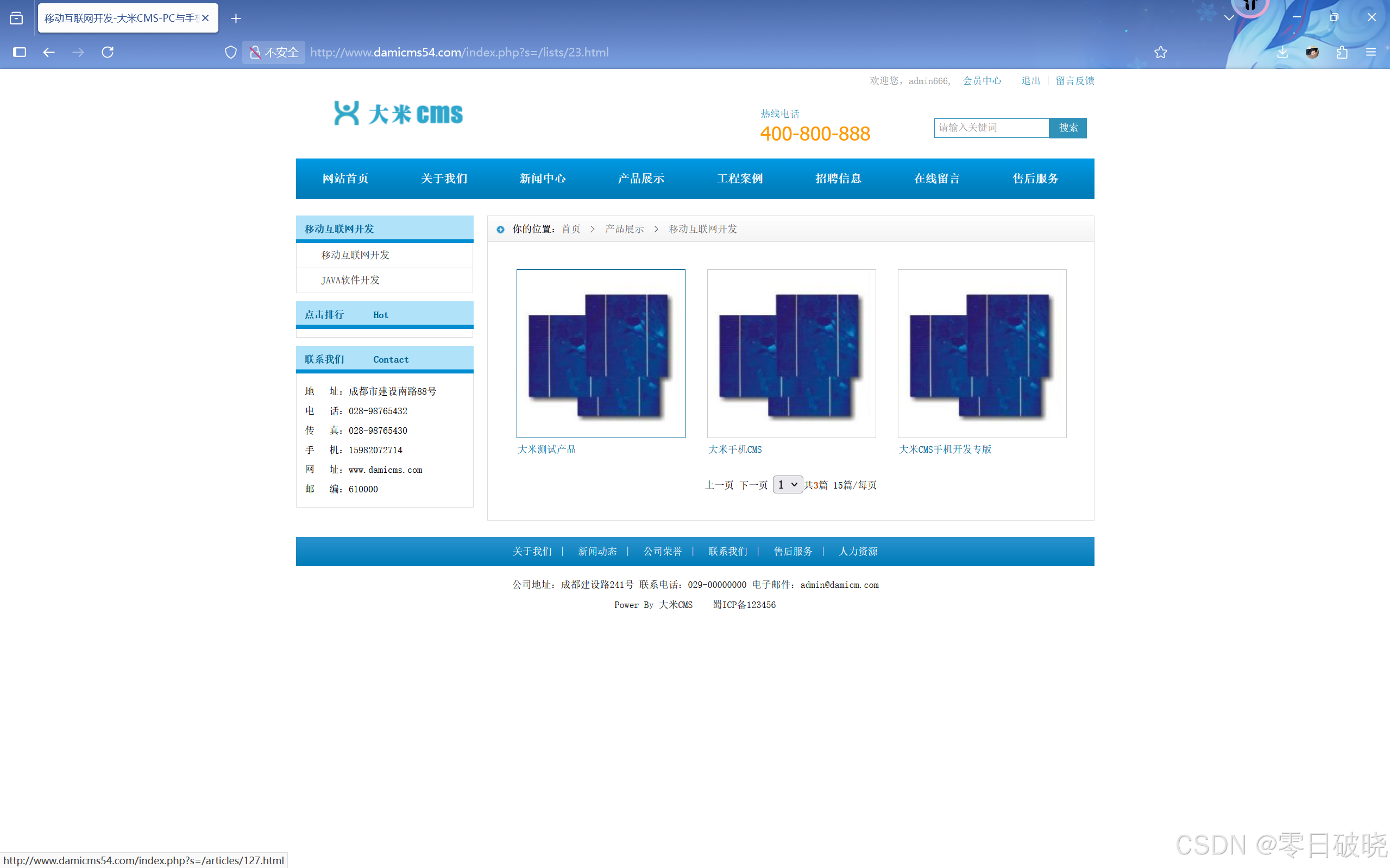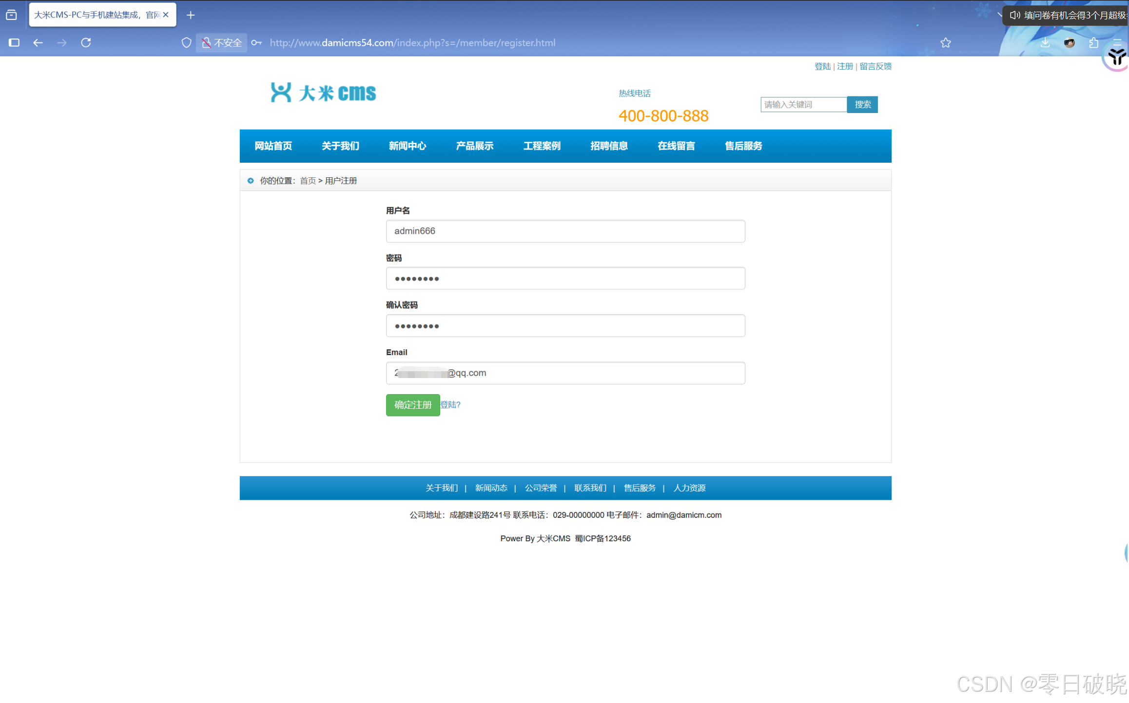 1.使用小皮面板快速搭建大米cms靶场,打开靶场