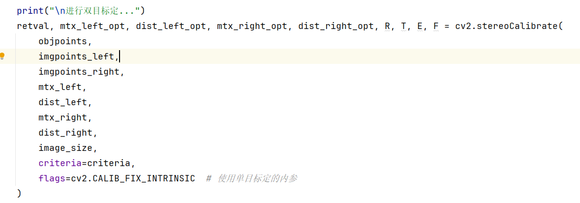 这个参数是说两个相机的内参矩阵就保持之前单目标定的内参矩阵,不需要在双目标定的过程中再重新计算了。
