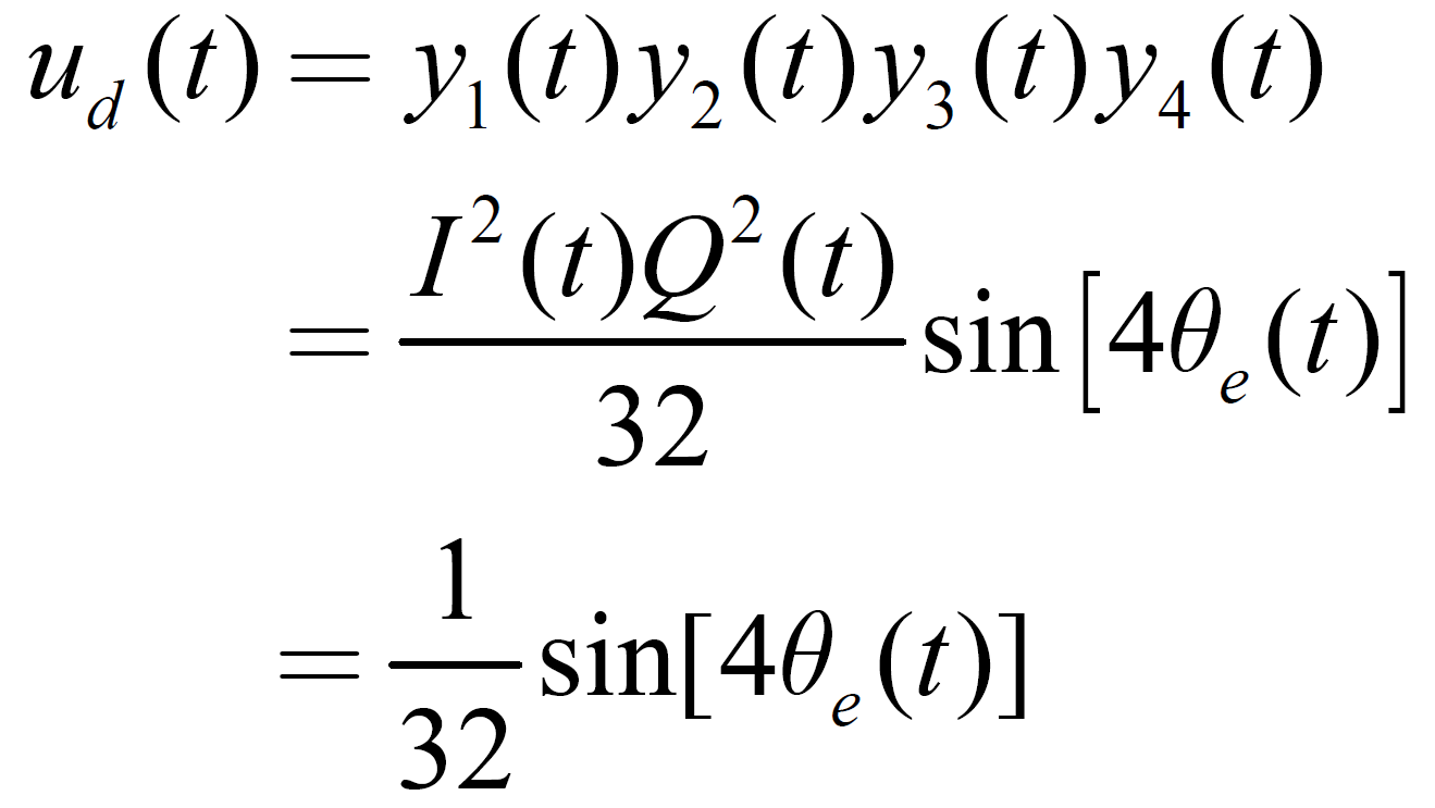 式中,为相位误差,从等效鉴相输出结果可以看出,四相 Costas 同步环路也是在在 0、