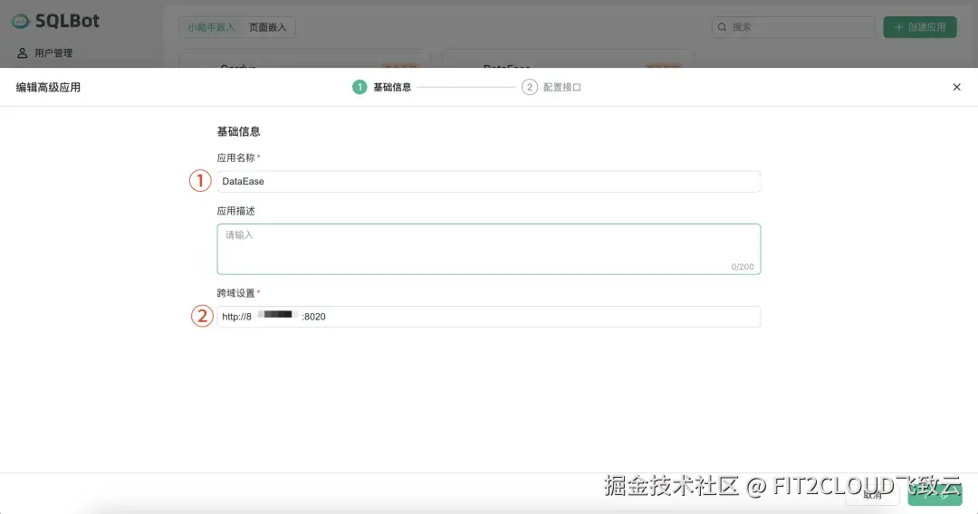① 填写应用的名称"DataEase";