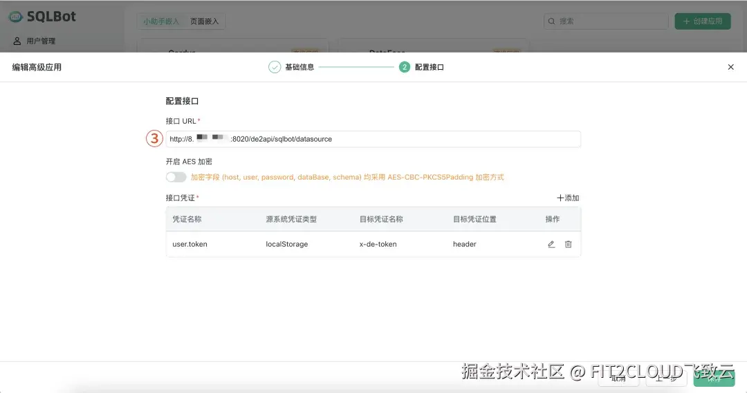 ③ 填写"接口URL",以定位DataEase中的数据资源;