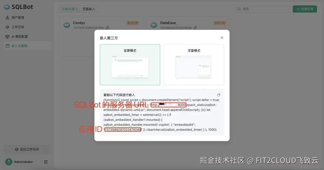 三、将SQLBot应用嵌入DataEase