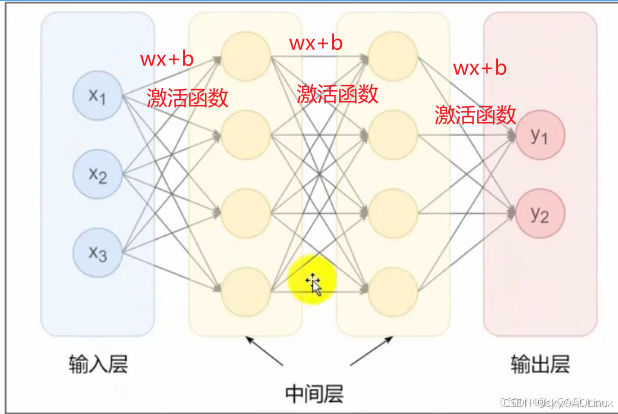 隐藏层=全连接层(仿射层,权重w和偏置b)+激活函数