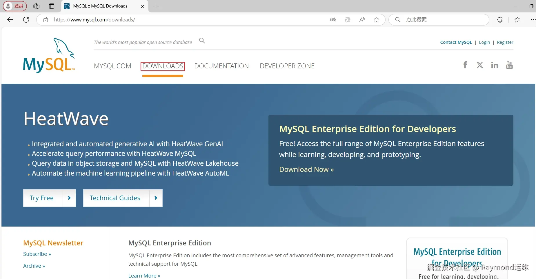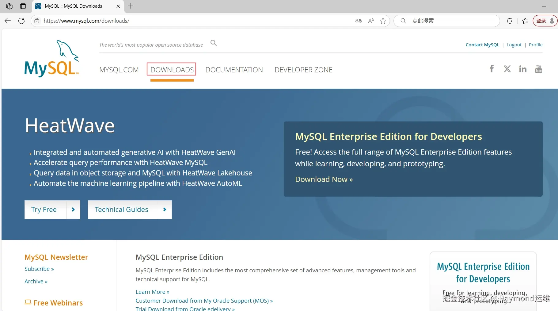 MySQL源码包下载,去"www.mysql.com/"网站下载,选择"DOWNLOADS",如图88所示。
