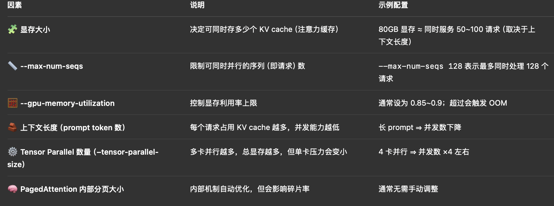 🧠 一、影响 vLLM 并发请求数的关键因素