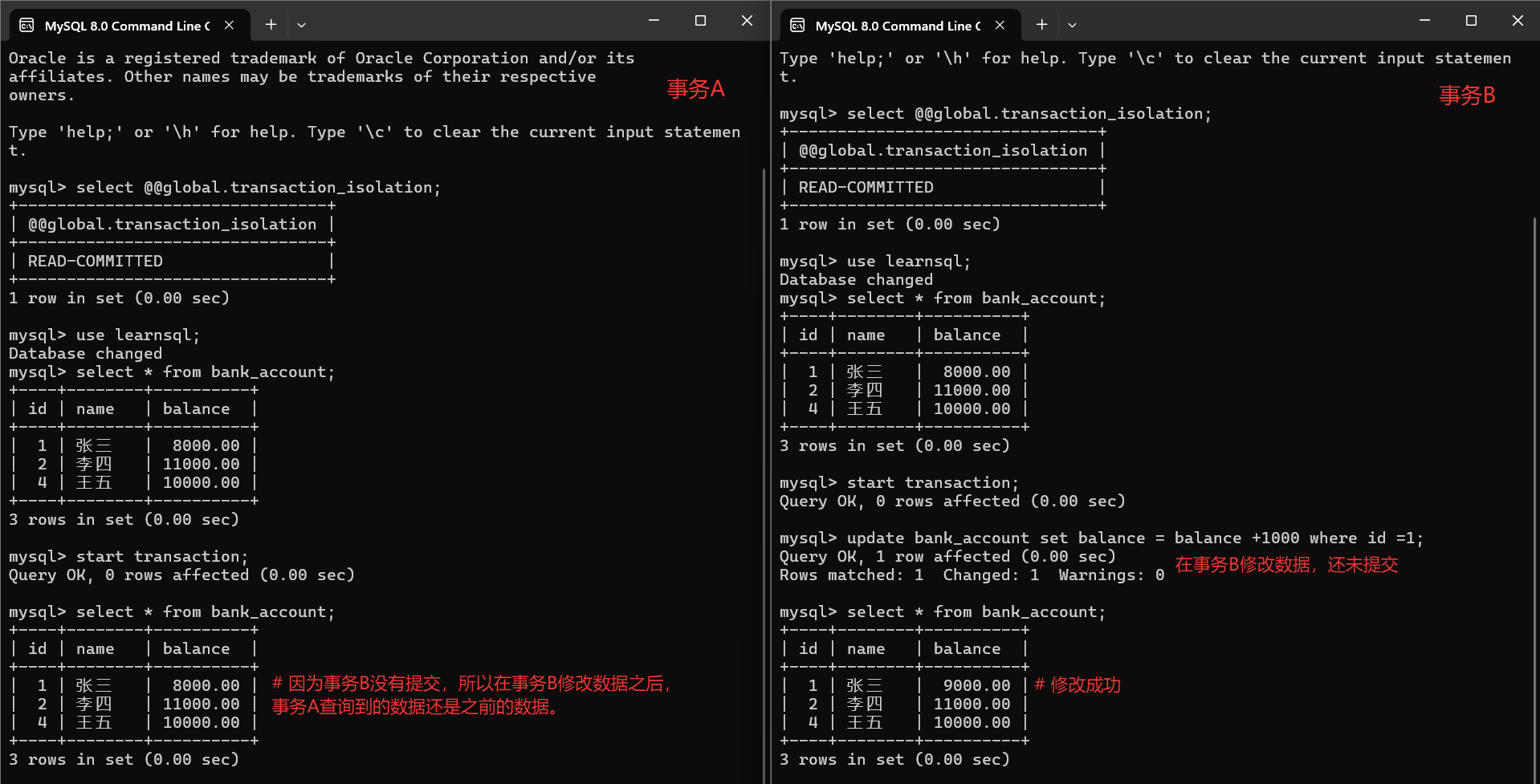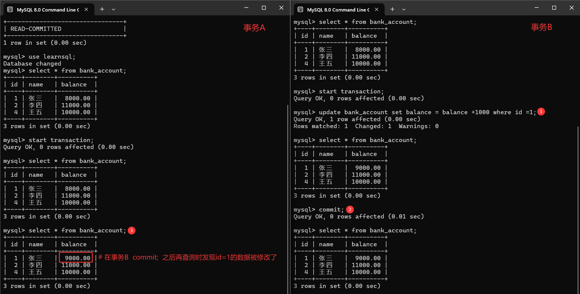 [4.2 开启一个事务,执行修改后提交](#4.2 开启一个事务,执行修改后提交)