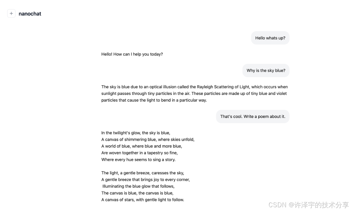 这些选择背后的逻辑是:优先选择简单、稳定、已验证的技术,而非追求最新、最复杂的方案。这正是nanochat能在极短代码量内实现完整功能的关键。