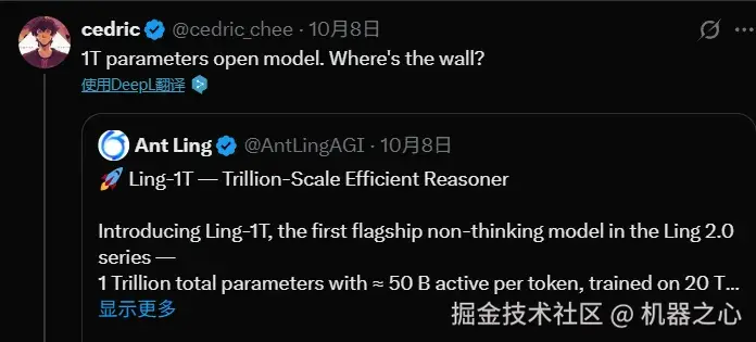 Ling-1T开源,x网友也震惊于开源模型的体量