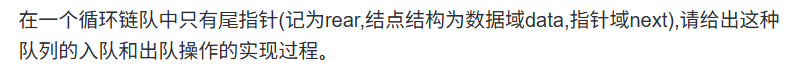 以下是用 C 语言实现只有尾指针的循环链队列的入队和出队操作: