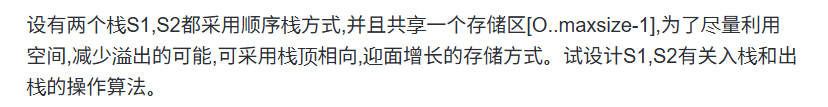 )向下增长。入栈时先判断是否栈满(top1 + 1 == top2