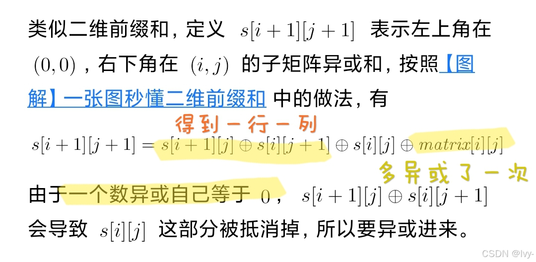 s[i + 1][j + 1] = s[i + 1][j] ^ s[i][j + 1] ^ s[i][j] ^ matrix[i][j];