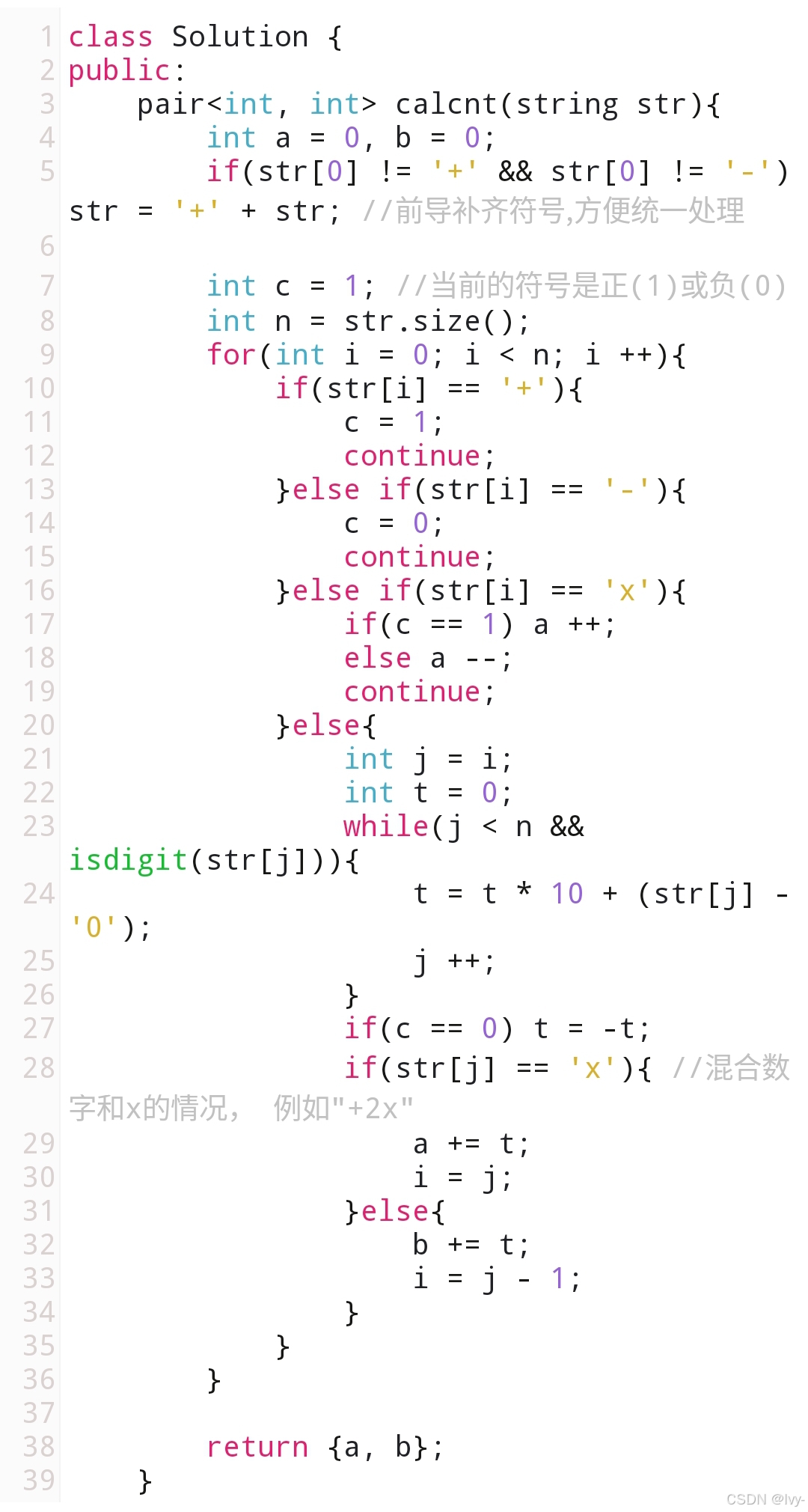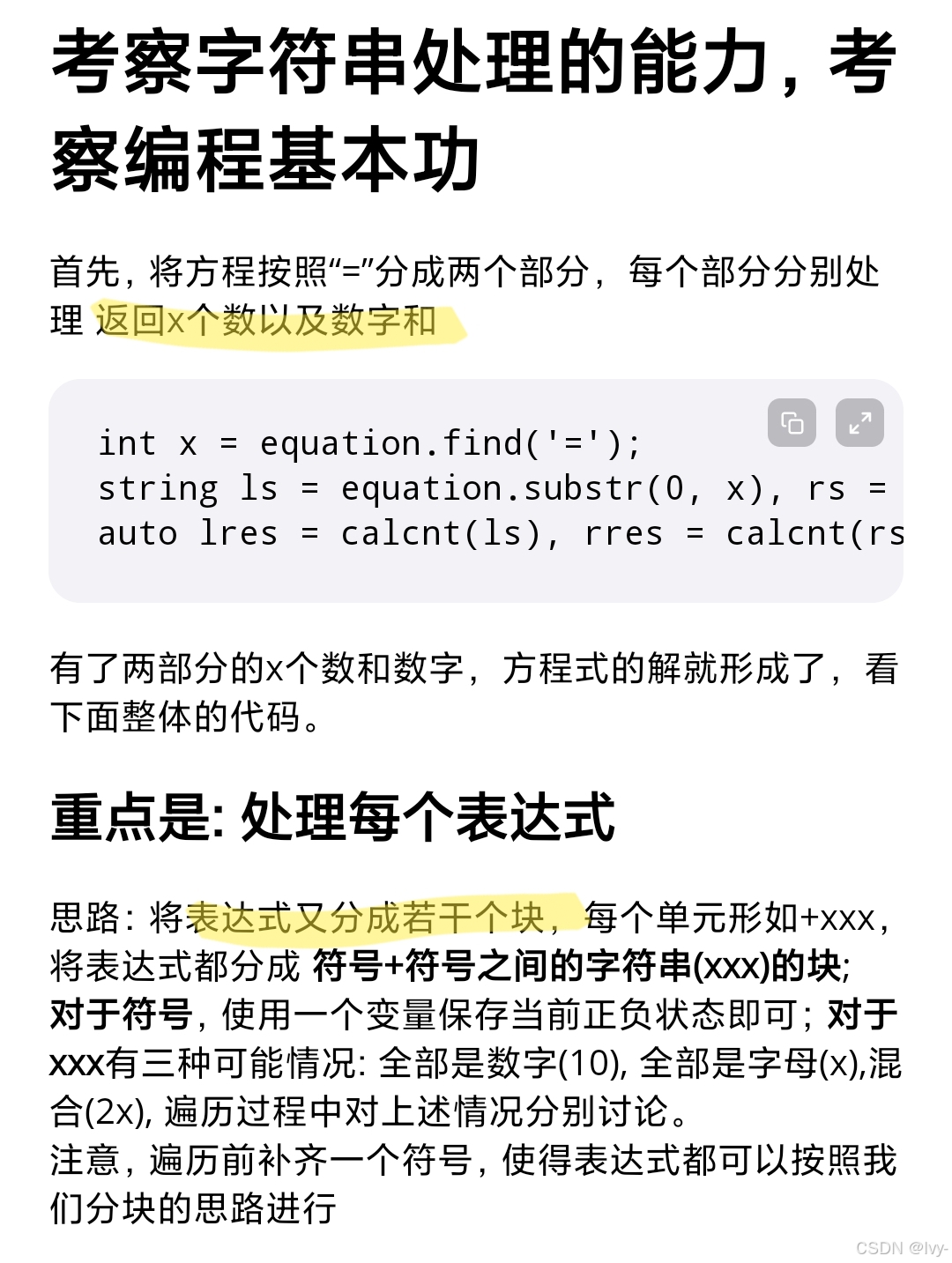 拆解等号左右两边的字符串,分别++计算出x的系数和常数项++