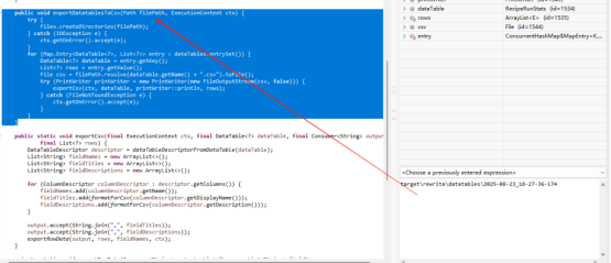 recipeRun.exportDatatablesToCsv(datatableDirectoryPath, ctx);