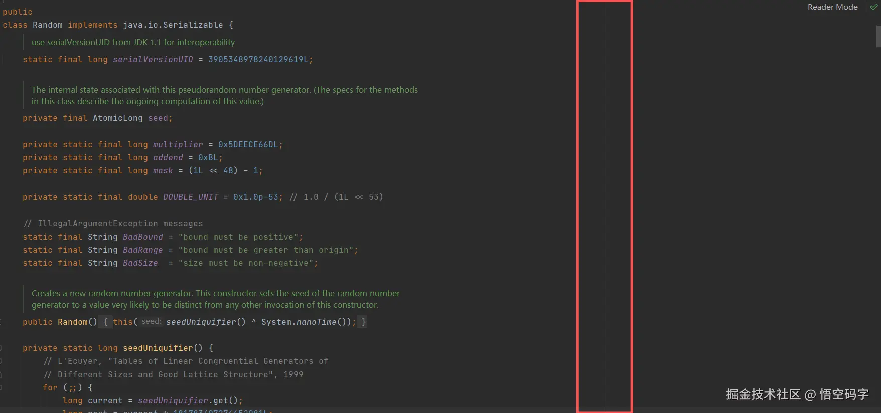 在IDEA里面找到File→Settings→Editor→General→Appearance,取消勾选【Show hard wrap and visual guides(configured in Code Style options)】即【显示强制换行和视觉参考线(在"代码样式"选项中配置)】,保存即可。