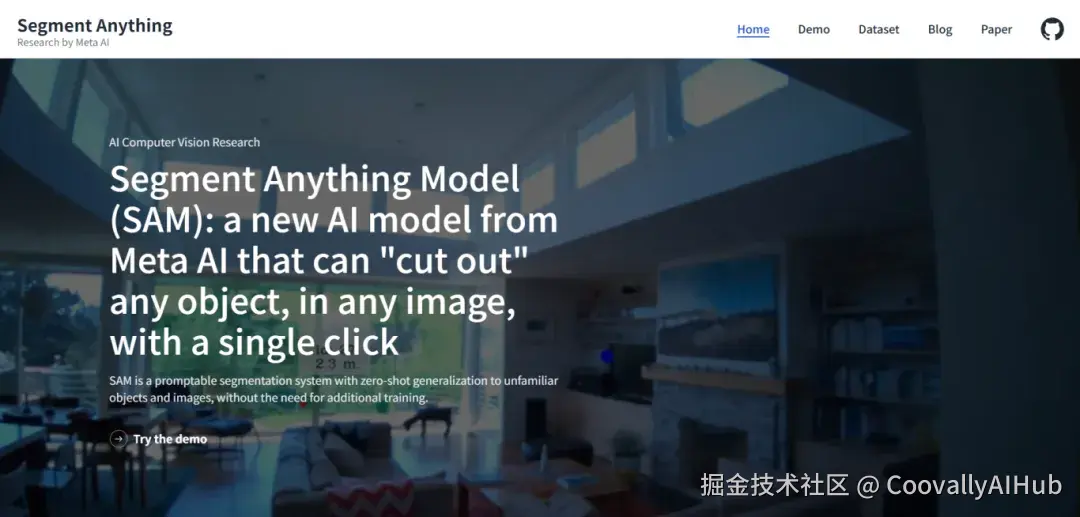 获得当年 ICCV 最佳论文提名,将图像分割这个专业任务,变成了像"切水果"一样简单交互。用户通过点、框等提示,就能从任何图片中精准分割出任何物体,开启了提示式分割的新纪元。并且被誉为 CV 领域的「GPT-3 时刻」。