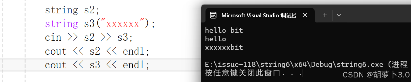 ok,我么原本是想给s2初始化为"hello",s3为"bit",结果成了上面的样子,这是因为s3中原本就有数据,">>"会在原有的数据后面继续追加,导致结果的错误,所以我们一不做二不休直接将数据清空(并没有销毁空间)