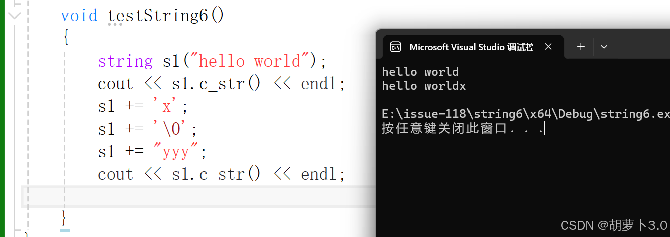 ok,实现完流插入、流提取以及getline,我们继续来看中间有\0的情况: