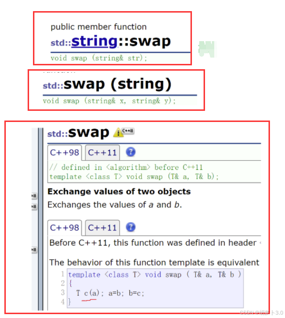 嗯?为什么这里会有三个交换算法?一个是算法库中的swap,另外两个是string 类中的swap。
