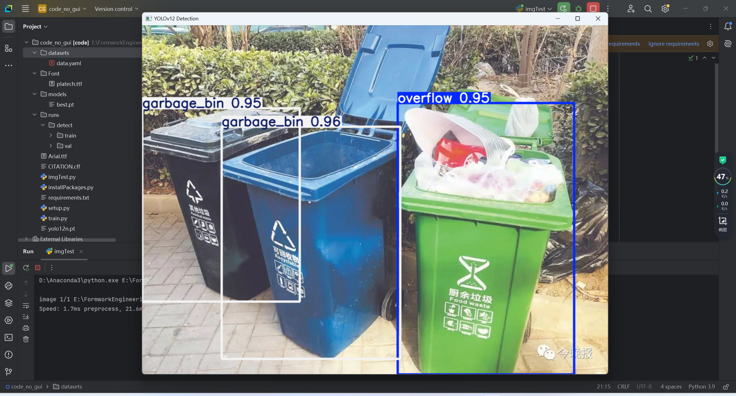 包含垃圾桶满溢数据集、训练代码和预测代码