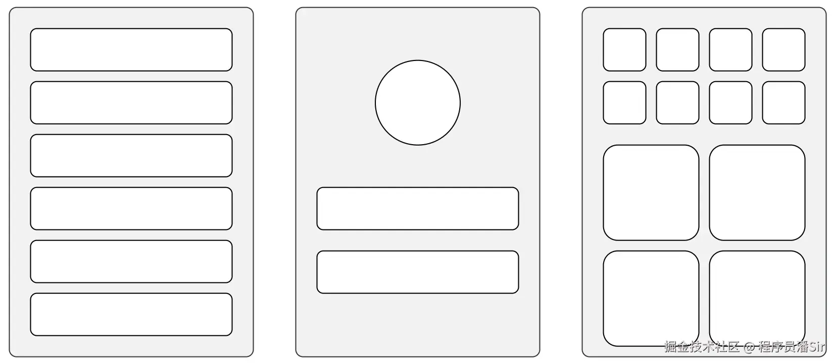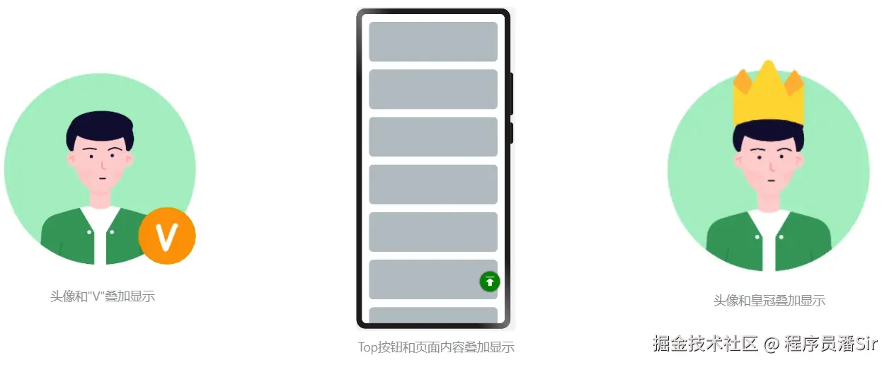 层叠布局是指将多个组件沿垂直于屏幕的方向堆叠在一起,类似于图层的叠加。以下效果都可以通过层叠布局实现